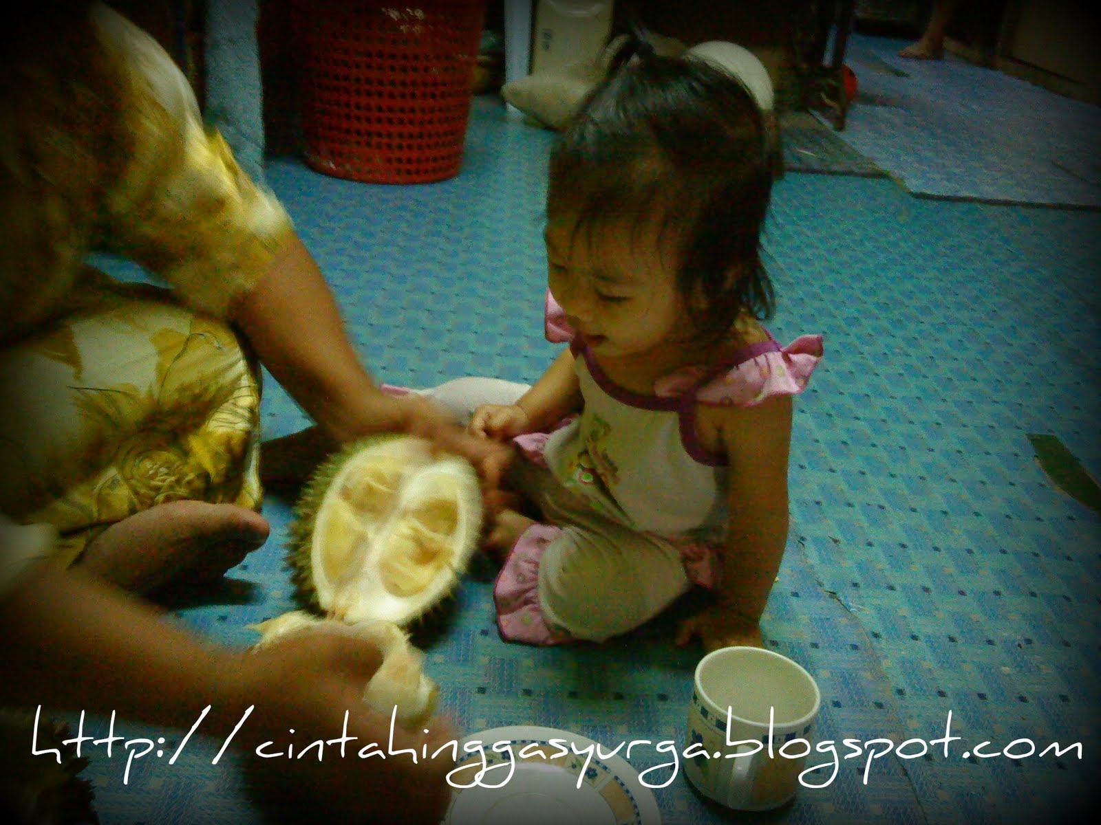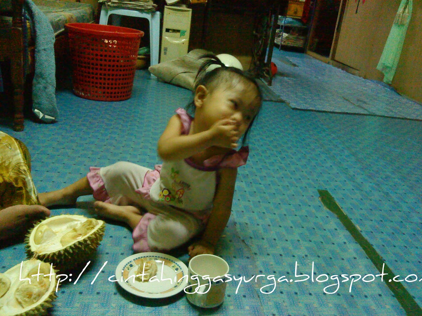 opah khadijah plak pesan : nanti bagi abah dia tengok anaknya ni hantu durian. balik nanti kenalah beli  makan ramai2...hahaha